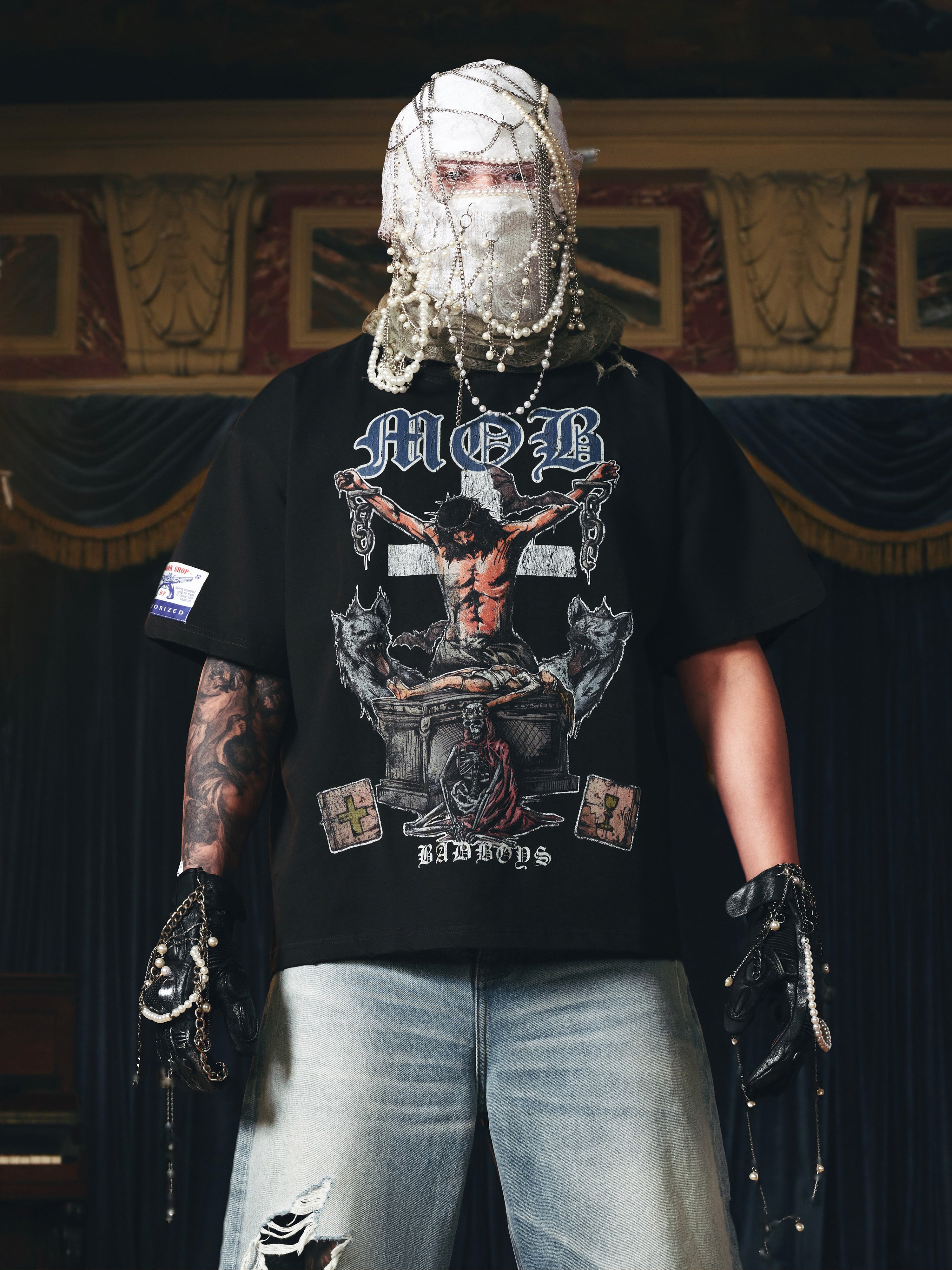 Very satisfied with this nun print, hung it up as soon as I got it to admire. I'm 175 cm, 80 kg, with a chest of 105 cm, waist of 94 cm, shoulders of 55 cm, and hips of 105 cm. Fits loose (too lazy to take photos, just for your reference, ask customer service for specific recommendations, their size suggestions are accurate). The fabric is heavyweight, there was a slight smell initially but it went away after wearing. Might be hot for summer, but the nun print is so nice, and it's a white tee at a good price during the sale, so I bought it immediately.